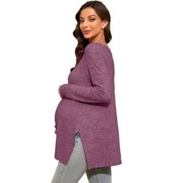 Smallshow Women's Maternity Shirts Side Split Long Sleeve Pregnancy Tops Clothes Medium Maroon
