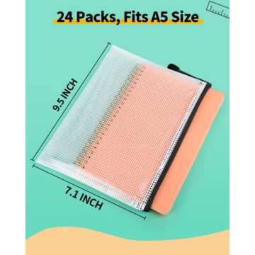 Smarpau A5 Mesh Zipper Pouch, 24 Pack 9.5" x 7.1" Plastic Zipper Pouches for Organizing, Multipurpose Waterproof Zipper Bags for Travel, Office, Home Storage, Black