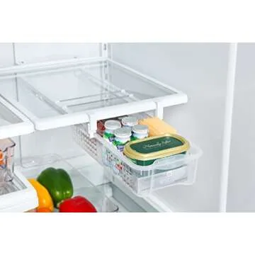 Smart Design Adjustable Pull Out Refrigerator Drawer - Medium, Set of 3 - Extendable Rails and Handle - BPA Free - Holds 15 lbs - Fridge Bin, Freezer, Pantry Food Storage Organizer - Kitchen - Clear