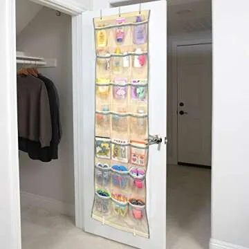 Smart Design 42 Pocket Over The Door Organizer - Beige & Gray - Versatile Home Storage