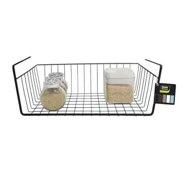 Smart Design Undershelf Storage Basket - Medium - Snug Fit Arms - Steel Metal Wire - Rust Resistant - Under Shelves, Cabinet, Pantry, and Shelf Organization - 16 x 5.5 Inch - Black