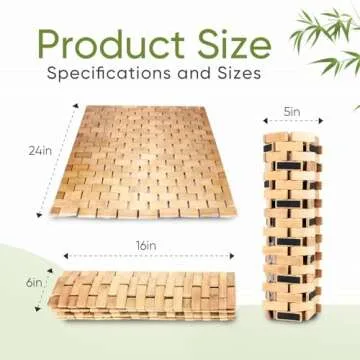 Smart FENDEE Natural Bamboo Bath Mat - 24x16 inches for Bathroom Safety and Style