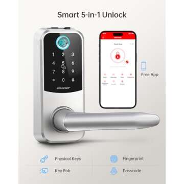 Smart Lock, SMONET Deadbolt Lock with Keypad, Keyless Entry Biometric Fingerprint Front Door Locks, Bluetooth Electronic Digital Lock with Reversible Handle, App Control, IC Card for Home, Apartment