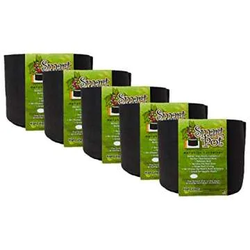 Smart Pot Soft-Sided Fabric Garden Plant Container Aeration Planter Pots, 3 Gallon, 5 Pack, Black