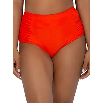 Smart & Sexy Women's Standard High-Waisted Bikini Bottom with Side Ruching, Hot Fire, XL