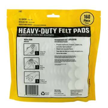 Designed to safeguard various **hard surfaces**, including hardwood, linoleum, ceramic tile, and laminate, these felt pads are essential for every household. The **self-adhesive backing** guarantees a secure bond, preventing any slipping or peeling, while the felt material allows for smooth sliding across the floor—perfect for when you need to rearrange your furniture without causing scratches or damage. With these pads, you can protect your investment in beautiful flooring while also enjoying the convenience of easy furniture movement.