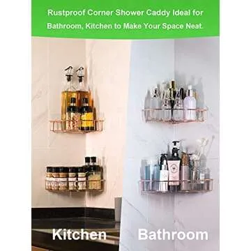 SMARTAKE 2-Pack Corner Shower Caddy, SUS304 Stainless Steel, Wall Mounted Bathroom Shelf with Adhesive, Storage Organizer for Toilet (Pink)