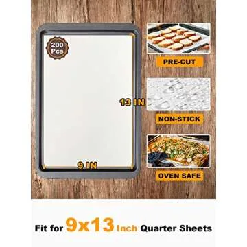 Show more Unlock the secret to effortless baking with the SMARTAKE 200 Pcs Parchment Paper Baking Sheets. Designed to simplify your culinary creations, these 9x13 inch non-stick precut parchment papers are perfect for use in baking, grilling, air frying, and steaming. Made from food-grade natural wood pulp, they guarantee a non-toxic and healthy option for your favorite cooking techniques. Say goodbye to messy spills and frustrating rolls of curling parchment paper – these sheets lay flat, so you can focus on what you do best: creating mouthwatering dishes!
