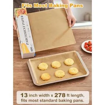 SMARTAKE Parchment Paper Roll for Baking, 13 in x 278 ft, 300 sq.ft, Non-Stick Baking Paper Sheets with Slide Cutter, Heavy Duty Extra Long, for Kitchen Baking Cooking Grilling Steaming, Unbleached