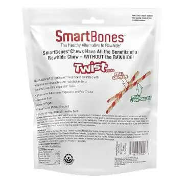 Show moreIntroducing the delicious and nutritious SmartBones chews for dogs, the ultimate treat that both dogs and their owners can agree on! Made with real chicken and wholesome vegetables, these chews are twisted into fun shapes that your furry friend will absolutely adore. Not only do they offer a delightful taste, but they are also rawhide-free, providing a safer alternative to traditional dog chews. Each stick-shaped chew is highly digestible and 100% satisfying, ensuring that your pup enjoys every bite without any discomfort.