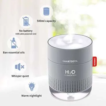 SmartDevil Small Humidifier 500ml Quiet with Night Light