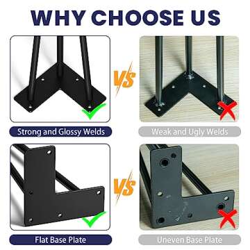 SMARTSTANDARD 28 Inch Hairpin Table Legs, 3 Steel Rods 1/2 Inch Pipe Diameter, 800lbs Load Capacity, Mid-Century Style for Coffee Table, Side Table, Night Stand (Black, 4PCS)