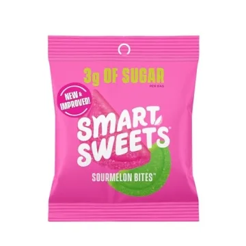 Show moreIndulge in the delightful experience of our SmartSweets Sourmelon Bites, where flavor and wellness meet in a burst of delicious sourness. These uniquely crafted candies are specifically designed for those who love the thrilling taste of sour watermelon but want a healthier alternative. Containing only 3g of sugar and a whopping 91% less sugar than traditional candies, these bites allow you to satisfy your sweet tooth without the guilt. SmartSweets uses high-quality ingredients such as allulose and a hint of stevia to create a perfect balance of sweetness and sourness.