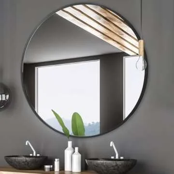 Show more This stunning black metal frame mirror is an essential addition to your modern home décor. Its geometric design not only serves a practical purpose but also enhances the aesthetic appeal of any room. With elegant rounded edges and a sleek matte finish, this mirror is perfect for various settings, including your main bedroom, guest room, or above a sink area. Measuring at 18 inches in diameter, its classic yet contemporary design fits seamlessly into smaller wall spaces, ensuring you can enjoy its beauty without overwhelming your décor.