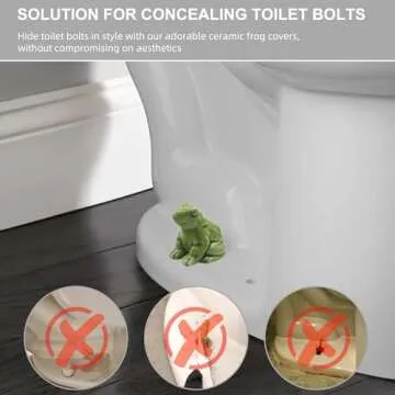 Show more The Ceramic Frog Toilet Bolt Cover is an exquisitely crafted bathroom accessory designed to enhance your space with its charming aesthetics. This product exhibits a beautiful pattern that infuses a pop of color into the usually mundane bathroom environment. The charming frog design not only serves a functional purpose but also adds a whimsical touch to your decor, effectively transforming your toilet area into a conversation starter.