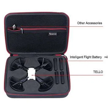 Show moreIntroducing the Smatree 3.6L Carry Case - the essential protective solution for your DJI Tello Drone and its four intelligent flight batteries. This expertly crafted hard case ensures that your drone and accessories are stored securely and travel-ready, combining robust construction with stylish design. Whether you’re heading out for an outdoor adventure or storing your equipment at home, this case is built to provide double safety and peace of mind.