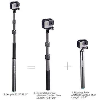 Show more If you are looking for the ultimate solution to capture stunning underwater moments, look no further! Introducing the S3C Floating Pole, the longest floating pole designed specifically for GoPro cameras, extending an impressive 39.5 inches for those crystal-clear shots. Crafted with high-grade carbon fiber, this pole is not only lightweight but also exceptionally durable, making it perfect for your adventurous escapades. The S3C consists of an extendable pole that ranges from 12.5 inches to 28 inches and a separate floating pole that measures 12.5 inches when fully folded, giving you versatile options for any filming situation.