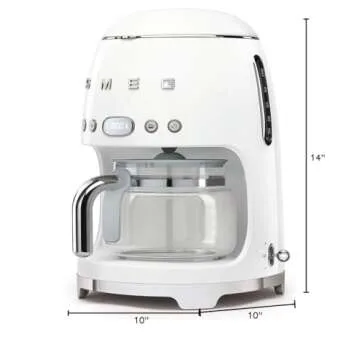 Smeg 50's Retro Style Aesthetic Drip Coffee Machine with 10 Cup Glass Carafe, Auto Start Feature, Keep Warm Plate, and Two Coffee Strength Settings (White)