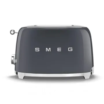 Show more Introducing the Smeg 50's Style Retro Aesthetic 2 Slice Toaster, a perfect blend of vintage design and modern functionality. With its iconic retro aesthetic, this toaster not only elevates your kitchen's style but also guarantees superior performance. The toaster features two extra-wide slots that easily accommodate various bread sizes, from artisan loaves to bagels, making it a versatile staple for your breakfast routine. Plus, with six browning levels, you can achieve the precise shade of toast you desire every time. The backlit chrome knob enhances usability, allowing you to easily select from four functions: Reheat, Defrost, Cancel, or Bagel settings. Constructed with a sturdy steel build and finished with powder-coated enamel, this toaster is designed for longevity and performance without compromising style.