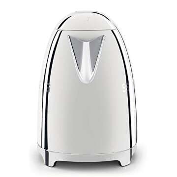Show more Introducing the Smeg KLF01SSUS 50's Retro Style Aesthetic Electric Kettle, a stunning combination of functionality and retro aesthetics. With a powerful 1.7-liter (7 cups) jug capacity, this kettle is designed to make a statement in your kitchen while providing the perfect brew every time. Its soft-opening lid ensures a gentle release of steam, while the double water indication feature allows you to measure in both liters and cups with ease. The removable stainless steel lime scale filter guarantees a clean pour, and the auto shut-off function at 100°C (212°F) ensures safety by turning off when the water reaches boiling point or when there is no water detected. Elevate your tea-making experience with Smeg's unique 50's retro design that is as stylish as it is practical.