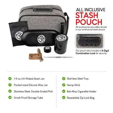 Smell Proof Storage Pouch - Polyester Odor Resistant Container with Easy Grip Handle - Portable Storage Bag with Padded Lock - 3 Digit Combination Lock - Grey