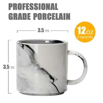 Smilatte 12 oz Stackable Coffee Mugs for Office, M101 Novelty Marble Ceramic Cup for Boy Girl lover Women Men, Set of 4, Gray