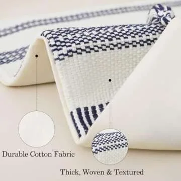 Smile Bee Spring Boho Outdoor Throw Pillow Covers Set of 2, Decorative Woven Striped Pillow Covers with Tassels for Couch Bed Sofa, 18x18 Inch, Navy Blue and Cream White