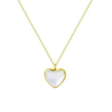 Show moreIntroducing the stunning Unique Moonstone Heart Necklace, a beautiful piece that embodies purity and hope through its exquisite moonstone stones. Crafted with care, this necklace not only serves as a fashionable accessory but also carries a deep meaning, making it a precious gift for those you hold dear. The heart-shaped pendant is a favorite among teenagers and young adults, lending itself to various styles and outfits. This elegant piece has been designed with a delicate chain that combines stainless steel with 14k gold plating, ensuring durability while being completely hypoallergenic. Perfect for daily wear or special occasions, the Unique Moonstone Heart Necklace adds an element of charm to any outfit.