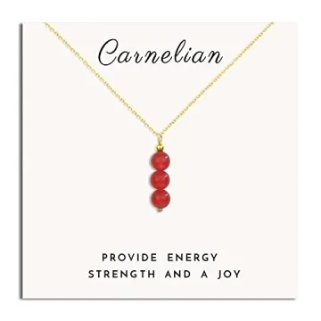 The necklace features a 14K gold plated chain and natural carnelian gemstones.