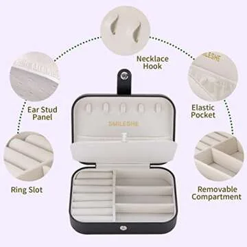 Smileshe Jewelry Box, PU Leather Small Portable Travel Case, 2 Layers Organizer Display Storage Holder Boxes for Rings, Earrings, Necklaces, Bracelets