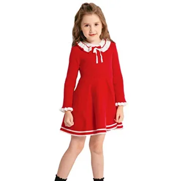 Show moreIntroducing the SMILING PINKER Toddler Girls Dresses Sweater, a long sleeve winter knitted skater dress with a charming ruffle collar. This dress is not just any ordinary piece; it's a blend of comfort, style, and warmth, making it perfect for your little princess during the colder months. The fabric is soft, heavy, and has some stretch, ensuring a perfect fit that flatters your toddler's silhouette. The skirt flares out with pleats, adding a lovely twirl effect that your little girl will adore. The white ruffle collar and cuffs, along with the bow tie and stripes hem, add a touch of elegance and playfulness to the dress.