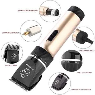 Sminiker Professional Low Noise Rechargeable Cordless Cat Dog Horse Clippers Grooming Kit