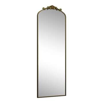 Show moreIntroducing the SMIROR Gold Full Length Mirror, a stylish and sophisticated addition to any home. Measuring a generous 64.9 x 21.6 inches, this arch vintage floor mirror beautifully balances traditional elegance with a luxurious touch. The exquisite baroque-inspired flourish design elevates the aesthetic of your space, making it a stunning focal point in any room. Crafted with high-quality tempered glass, this mirror not only provides a clear, true reflection but also boasts unmatched durability and safety. Unlike ordinary mirrors that break easily, the shatter-proof nature of tempered glass ensures peace of mind in homes with children or pets.