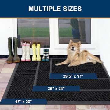 Smiry Front Door Mat Outside Entrance, Heavy Duty Sturdy Natural Rubber Doormat, Trap Dirt and Moisture, Easy Clean Low Profile Welcome Floor Mats for Indoor Outdoor Entry, 29.5x17 Inch, Black