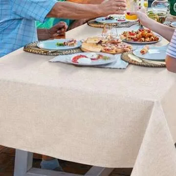 Smiry Rectangle Faux Linen Table Cloth – Waterproof & Washable Decor