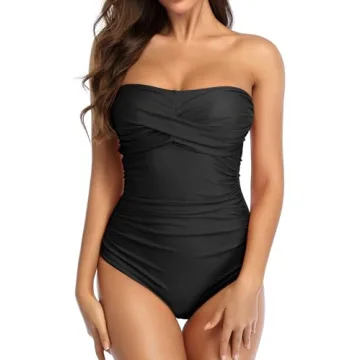 Smismivo Women's Vintage Retro One Piece Swimsuit - Tummy Control & Strapless