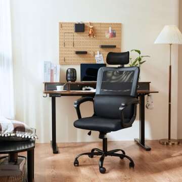 SMUG Office Desk Computer Chair, Ergonomic High Back Comfy Swivel Gaming Home Mesh Chairs with Wheels, Lumbar Support, Adjustable Headrest,Comfortable Pillow,Soft Arms,120°tilt for Bedroom,Study,Black