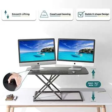 Its double X-shape design ensures remarkable stability and load-bearing capacity, allowing you to safely place your laptop or monitors without worries. Transitioning between sitting and standing positions not only enhances comfort but also encourages a healthier work posture, making it an invaluable addition to your office.