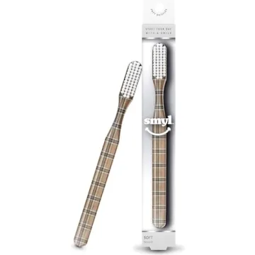 SMYL Toothbrush, Toothbrushes for Adults with Nylon Bristles, Oral Care and Plaque Removal, Fashion Textile Print, Plaid