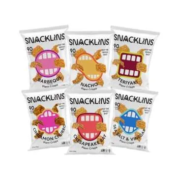 SNACKLINS Plant Based Crisps, Low Calorie Snacks, Vegan, Gluten-Free, Grain-Free, Healthy, Crunchy, Puffed Snack - Variety Pack - .9oz Bag (Case of 6)