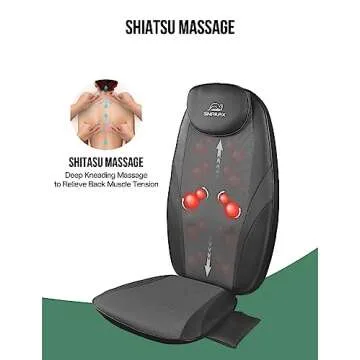 Show more Indulge in the ultimate relaxation experience with the Snailax Back Massager, a premier comfort solution designed to alleviate back pain and muscle tension. Equipped with four deep kneading massage nodes, this innovative massage chair pad adapts perfectly to your body’s curves for a tailored massage experience. Its versatility shines through with an adjustable massage area, allowing you to focus on specific zones—be it your upper, middle, or lower back. With the added spot massage function, you can target problem areas and melt away stress effectively.