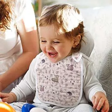 The Snap Muslin Bibs come in a convenient 3-pack with charming designs that will complement any outfit. These bibs are made to grow with your child, featuring multiple secure snaps that allow for easy fastening and an adjustable fit. Parents can have peace of mind knowing that the snaps are secure enough that inquisitive little hands can’t pull them off. This thoughtful design ensures that your infant or toddler stays both cute and clean!