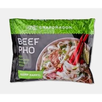 Show more Introducing the delightful Snapdragon Instant Pho, a culinary experience that offers the authentic flavors of Vietnamese cuisine within minutes! Perfectly designed for those who crave delicious food but may not have the time to visit a restaurant, this product is your go-to solution for a hearty meal or snack any time of the day. Each pack contains four 2.1 oz servings of flavorful rice noodles, savory soup broth base, and dried vegetables, all complemented by a unique flavoring oil.