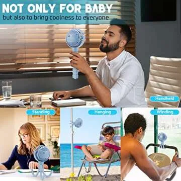 snawowo Upgraded Portable Baby Stroller Fan, 360°Rotate Rechargeable Mini Clip on Fan with Flexible Tripod for Stroller Treadmill Crib Car Seat Travel, 4000mAh Battery Powered Handheld Fan (Blue)