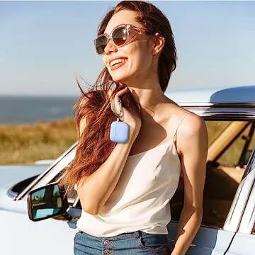 SNBLK Compatible with AirPods 3rd Generation Case Cover 2021, Soft Silicone Shock-Absorbing Protective AirPods 3 Case Skin with Keychain, Support Wireless Charging, Front LED Visible, Light Blue