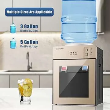 SNKOURIN Top Loading Water Dispenser,3 in 1 Chiller Dispenser Mini Water Machine Desktop Automatic Drinking,3 to 5 Gallon Water Cooler Dispenser for Home Office Coffee Tea Bar Dorm,Champagne Gold