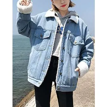 Snoly Women's Lapel Sherpa Lined Buttons Denim Jean Fleece Jackets Coats
