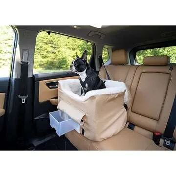 Snoozer Dog Car Seat with Storage Tray: Lookout II Car Seat for Small Dogs Under 25lbs, Size: Medium, Fabric: Birch Diamond, Pet Car Seat to Alleviate Car Sickness for Dogs, Removable Washable Cover