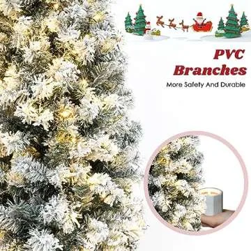 Snow Flocked Artificial Holiday Christmas Pine Tree for Home, Office, Party Decoration w/ 250 Warm White Lights, Metal Hinges & Base, 6.5ft Christmas Snow Tree