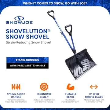 Show moreIntroducing the Snow Joe Shovelution Snow Shovel, an innovative solution designed for effortless snow removal. With its patent-pending spring-assist technology, this shovel captures and releases energy, significantly reducing physical strain on your back and shoulders. Whether you're a senior citizen looking for an easier way to clear your driveway, or someone with back issues, this shovel is engineered to accommodate your needs.
